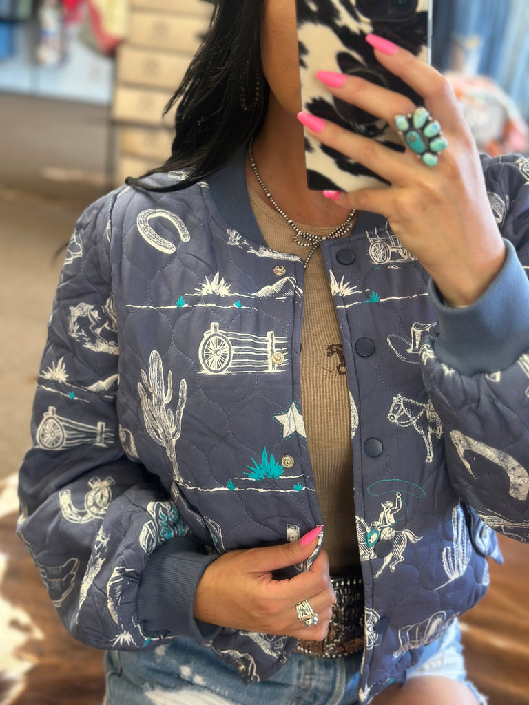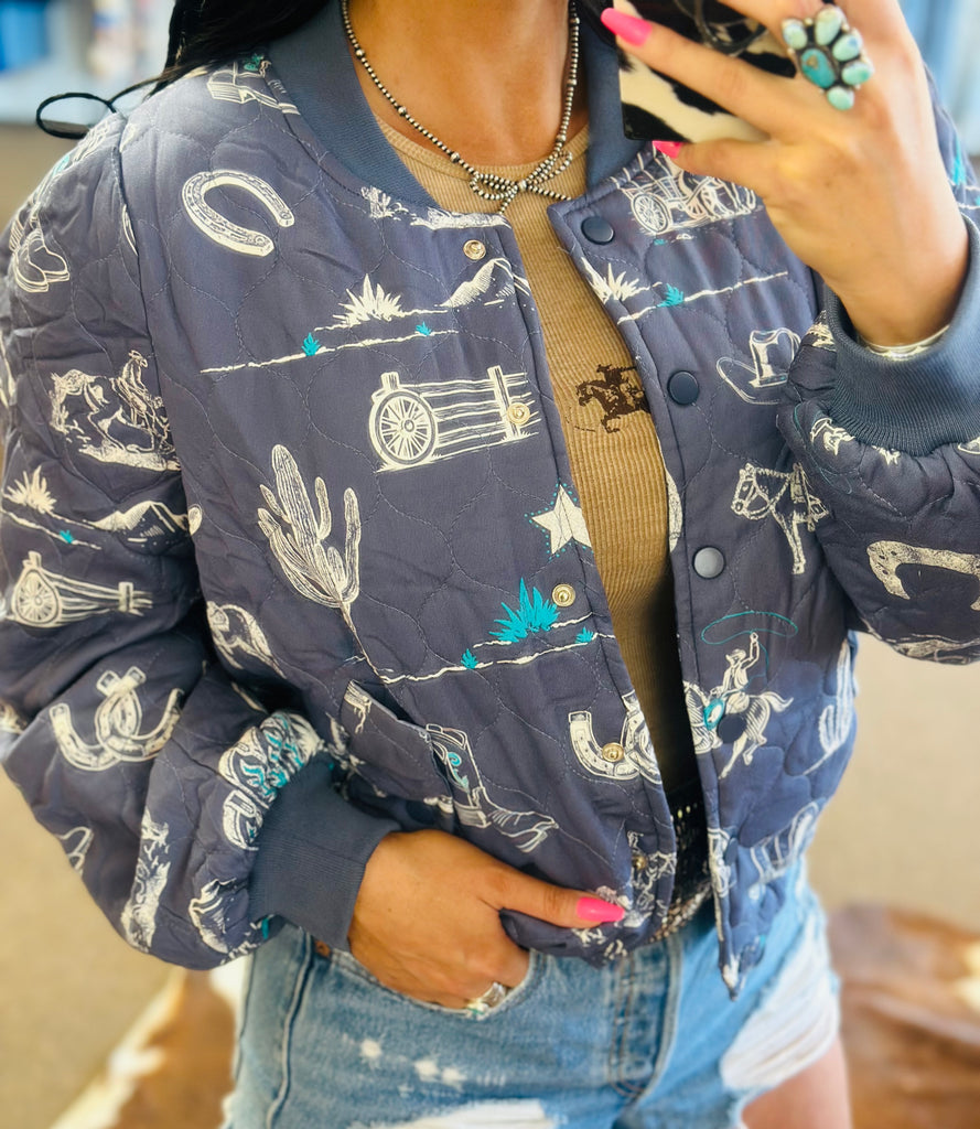 • Western print snap button up jacket